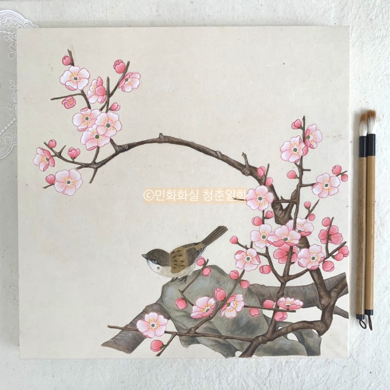 민화 종류 참새의 역할 및 의미 호작도 (虎鵲圖) 호랑이와 참새(또는 까치)를 함께 그려 강인함+기쁨을 동시에 표현. 화조도 (花鳥圖) 꽃과 함께 그려져 자연의 조화, 일상 속 기쁨을 상징. 부귀화 (富貴畵) 부귀, 장수를 기원하는 그림에서 참새가 복의 전달자로 등장하기도 함.