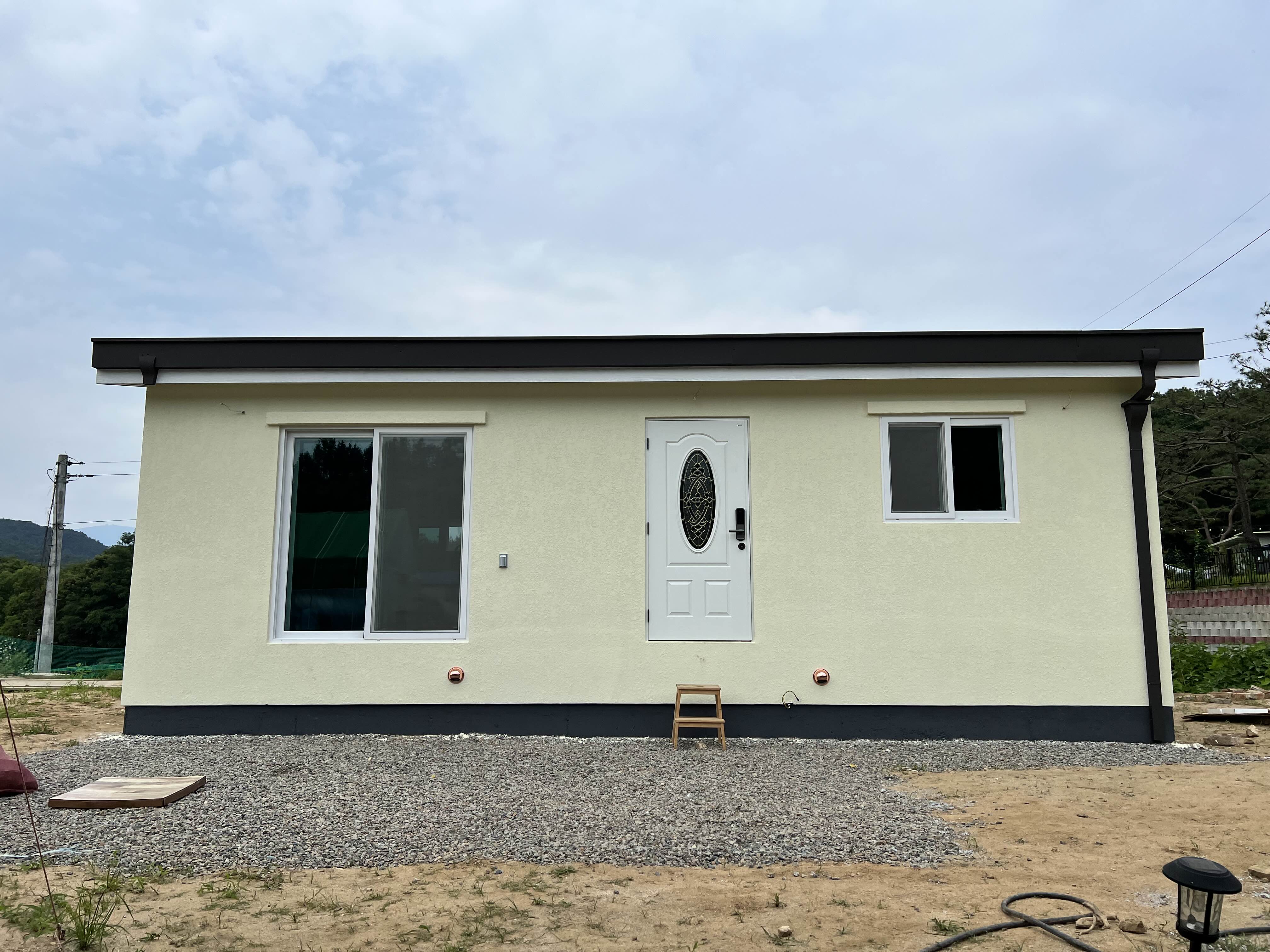 올 때 거실 쪽 창 부분이 어딘가에 부딪혀서 부서졌었는데, 사진 찍은 날 보니까 안쪽 창 연결 부분이 망가져 있더라고요. 허허 오늘 a/s 요청해 뒀는데 어떨까 모르겠어요. 그리고 다음 주부터는 데크 부분과 주차장 부붙 시멘트를 깔 예정입니다. 집은 작지만 알차서 마음에 들어요. 화장실이 좀 커서... ;;;; 이리 클 줄 몰랐네요. 방은 붙박이장이 들어와서 사람이 누우면 딱 맞는 사이즈예요. 뭘 더 못함. ㅎㅎㅎ 서울 집보다 훨씬 알차고 좋아요. 방이 하나인데 좀 아쉽지만요. 이대로 이사 오고 싶네요. 여보 방하나만 추가요~