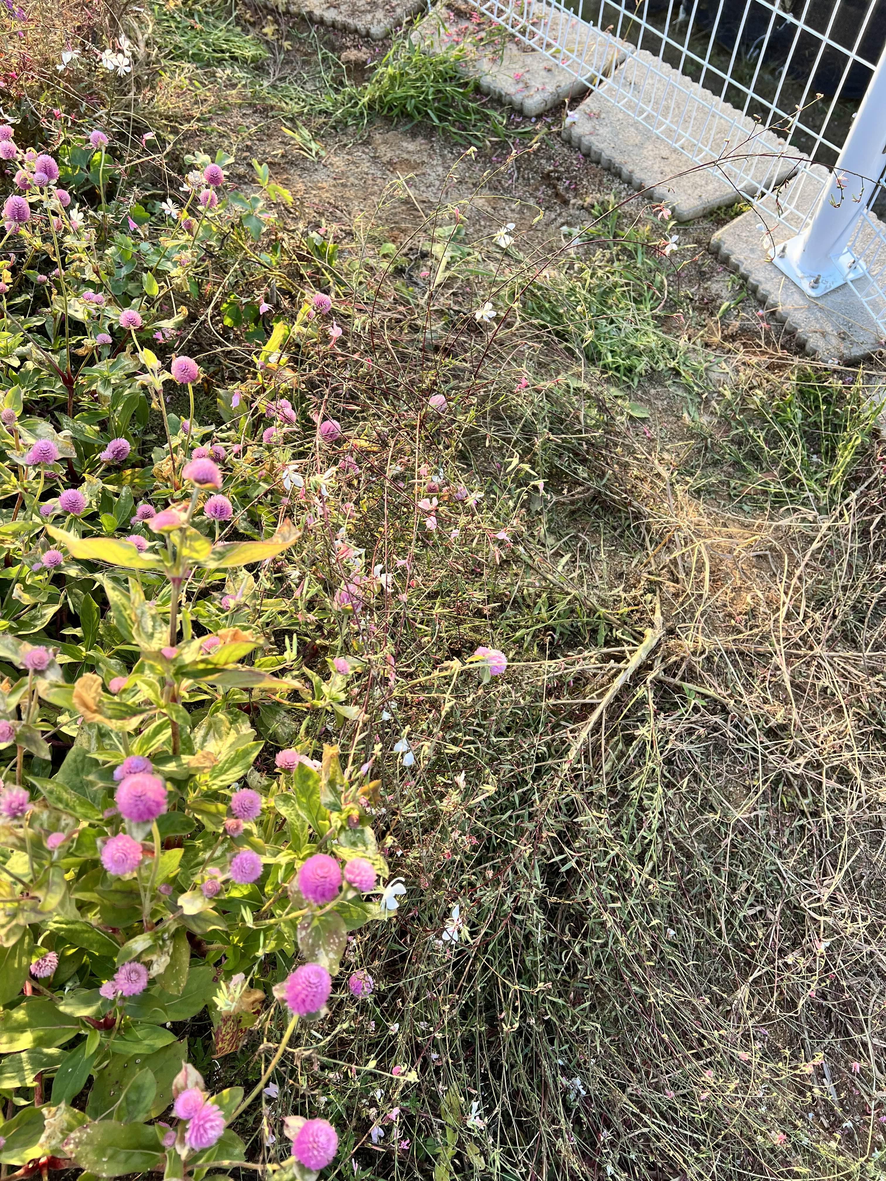 제가 고소공포증이 있어서 꽃밭을 끝에 조성은 했으나 가까이 가지 못했어요. 울타리 치는거 도와줄 때도 기어 다니면서 할 정도였거든요. 손이 안 가는 곳이었는데, 그래서인지 이렇게 천일홍이 만발이더라고요. 예쁘죠?