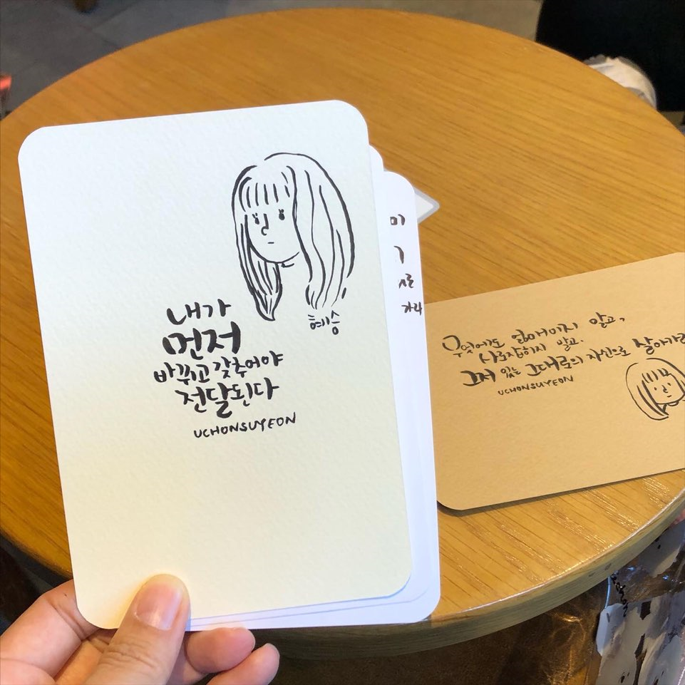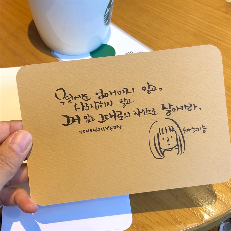 선물한답시고 글귀를 받아서 적다보면, 저마다의 생각들이나 관심사를 엿볼 수 있어서 좋다. 남의 글귀를 채집하는 기분. ㅎㅎ