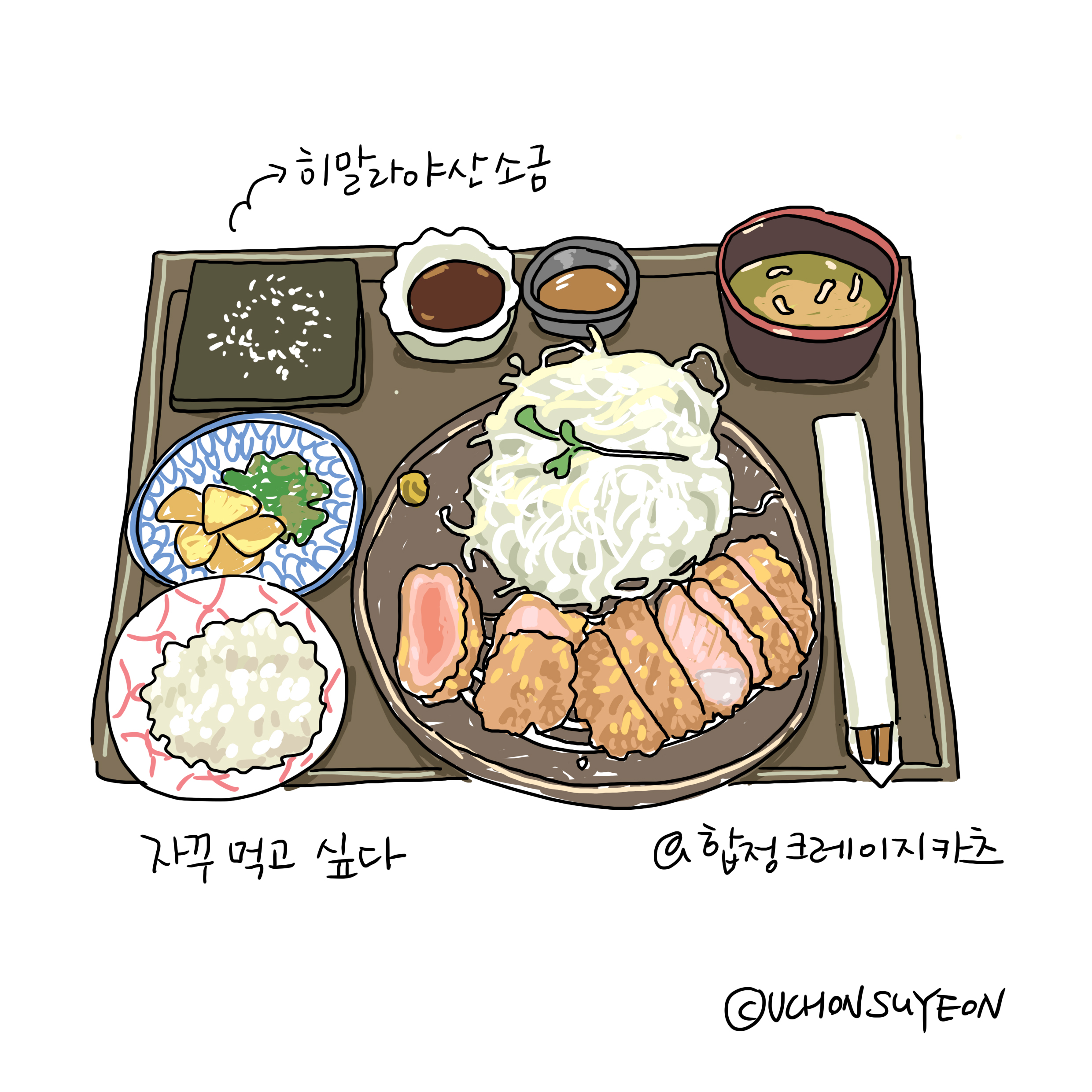 어쩌다 돈가스가 먹고 싶어서 검색 후에 간 곳이다. 일부러 찾아가는 곳은 드믄데, 이 곳은 정말 간간히 맛이 생각나서 간다. 그리고 부근에 손님이 오게 되면 이 곳으로 뫼시는 경우가 많다. 겸사겸사 나도 먹고. ㅎㅎ 정말 고기가 두툼하다. 겉바삭 속촉촉의 대명사다. 내가 먹어 본 돈가스 중에 단연 최고다. 히말라야산 소금을 찍어먹으라고 추천해주는데, 처음에는 이게 뭔 맛인가 싶다가 차츰 그 맛에 중독된다. 소스들도 맛이 과하지 않고 좋다.