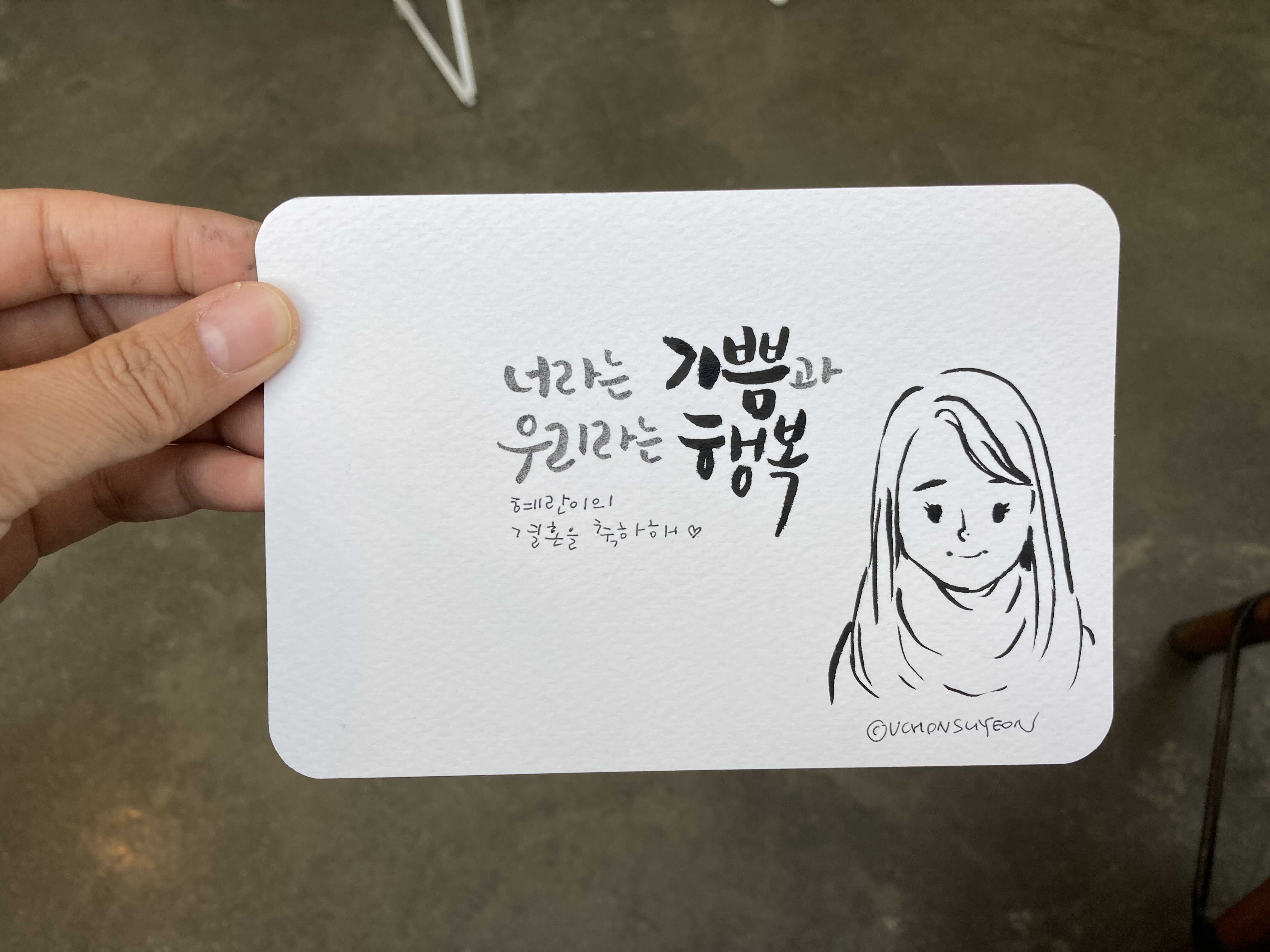 결혼한 지인과 맛점하고 캘리그래피 선물을 했다. 코로나로 사람 만난지 오래라, 오랜만의 선물이였다. 선물은 주는 기쁨도 크지.
